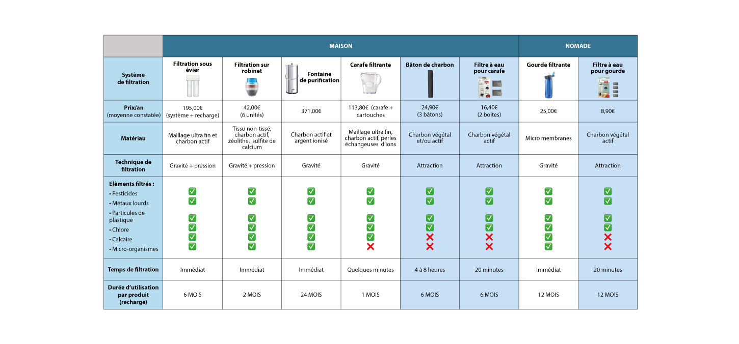 Le charbon actif végétal français est idéal pour filtrer et purifier l'eau courante des carafes et gourdes.